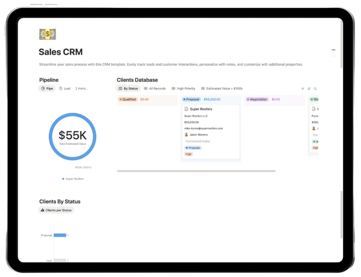 This is for your business use only. Agency OS is a single business license - you can use it across your entire agency/team, but you cannot resell it, share it with other businesses, or distribute the template. You can customize it however you want for your agency's needs and share it with your team members and clients as part of your operations.